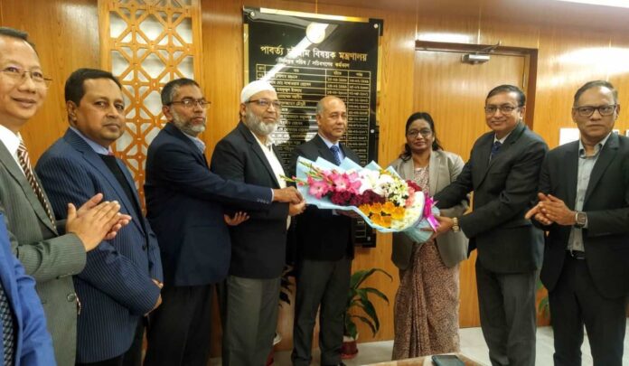 ৫ জানুয়ারি পার্বত্য চট্টগ্রাম বিষয়ক মন্ত্রণালয়ে সচিব এর দপ্তরে এসে পৌঁছালে মন্ত্রণালয়ের ঊর্ধতন কর্মকর্তাগণ তাকে ফুল দিয়ে বরণ করে নেন।