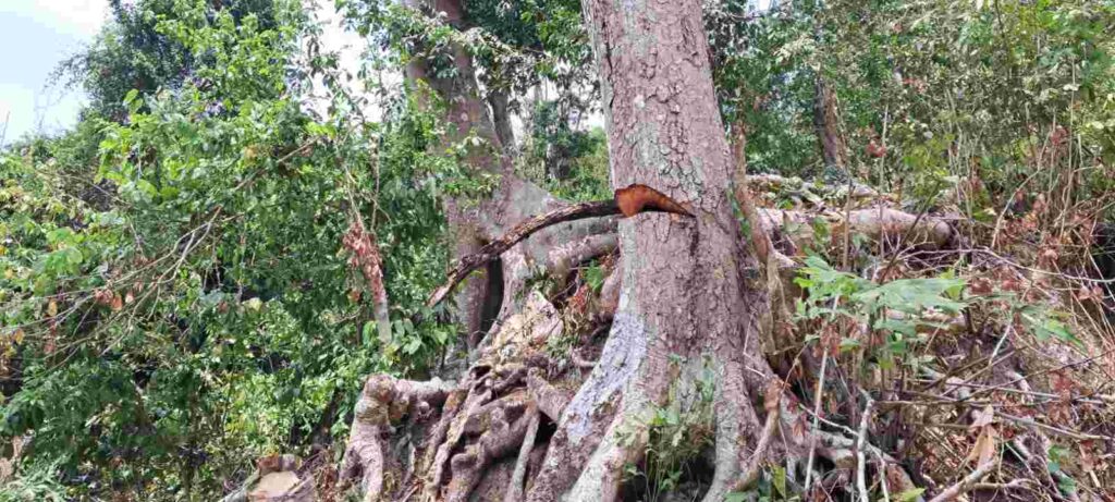 সোমবার দুপুরে সরেজমিনে গিয়ে দেখা যায়,পোলা ব্যাঙ ঝিরির স্বাভাবিক পানিপ্রবাহ বন্ধ করে পাহাড় কেটে ট্রাক চলাচলের উপযোগী রাস্তা তৈরী করা হয়েছে। দুর থেকে দেখলে মনে হয় যেন উন্নয়নের কাজ চলছে। কিন্ত কাছাকাছি গেলে দেখা যায় শত বছরের পুরনো মাতৃগাছ প্রায় বিলীন। যন্ত্রচালিত করাত দিয়ে গত দুই বছর ধরে গাছ কাটা হচ্ছে।