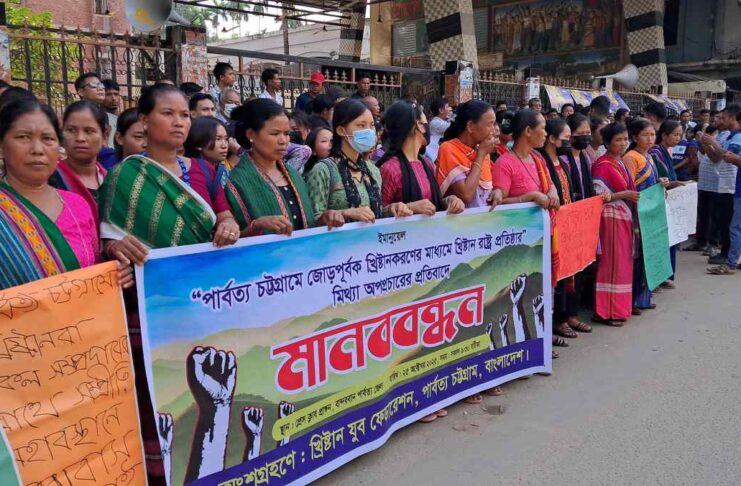 ‘খ্রিস্টান রাষ্ট্র গঠনের অপপ্রচারের’ প্রতিবাদে বান্দরবানে খ্রিষ্ট ধর্মাবলম্বীদের মানববন্ধন