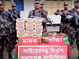 তাহিরপুর সীমান্ত থেকে গাঁজা ও নাসির বিড়ি উদ্ধার