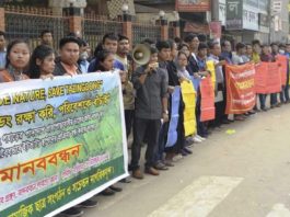 বান্দরবানে তাজিংডং পাহাড়ের পাদদেশে ইটভাটা স্থাপন বন্ধের দাবিতে মানববন্ধন