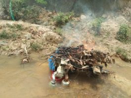 বালি তোলার অবৈধ মেশিন পুড়িয়ে দিলেন ইউএনও