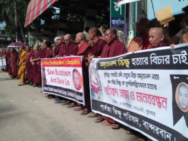 কুমিল্লায় বৌদ্ধ ভিক্ষু হত্যার প্রতিবাদে বান্দরবানে মানববন্ধন